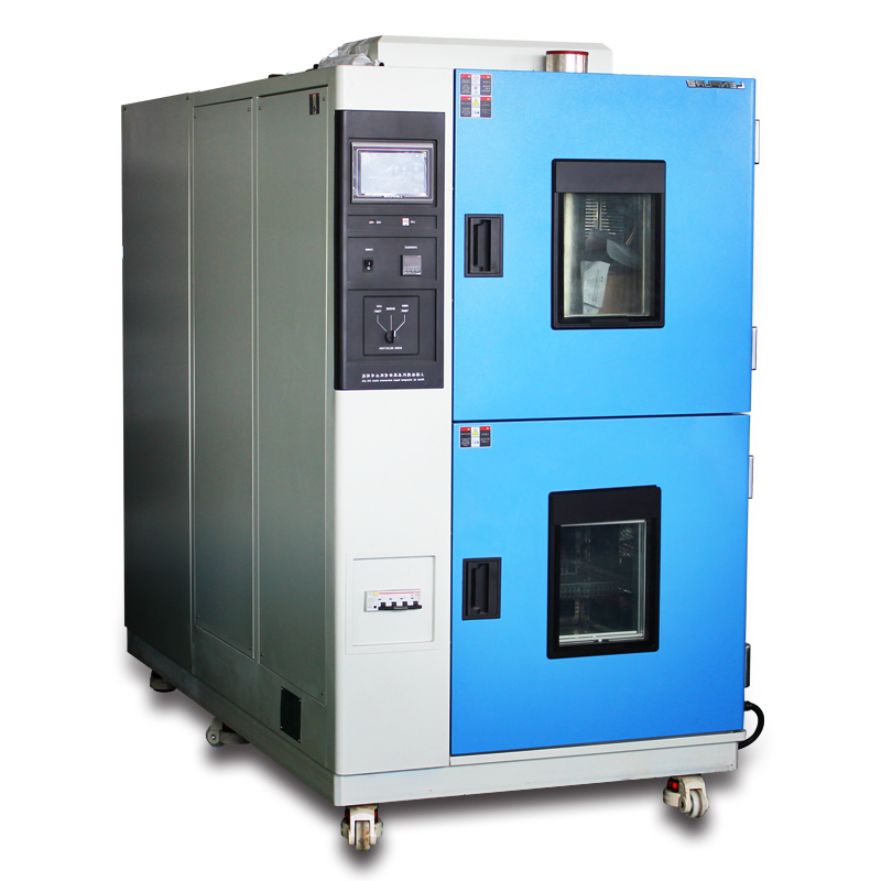 二箱式冷热冲击试验箱是金属、塑料、橡胶、电子等材料行业必备的测试设备, 用于测试材料结构或复合材料,在瞬间下经极高温及极低温的连续环境下所能忍受的程度,得以在短时间内检测试样因热胀冷缩所引起的化学变化或物理伤害